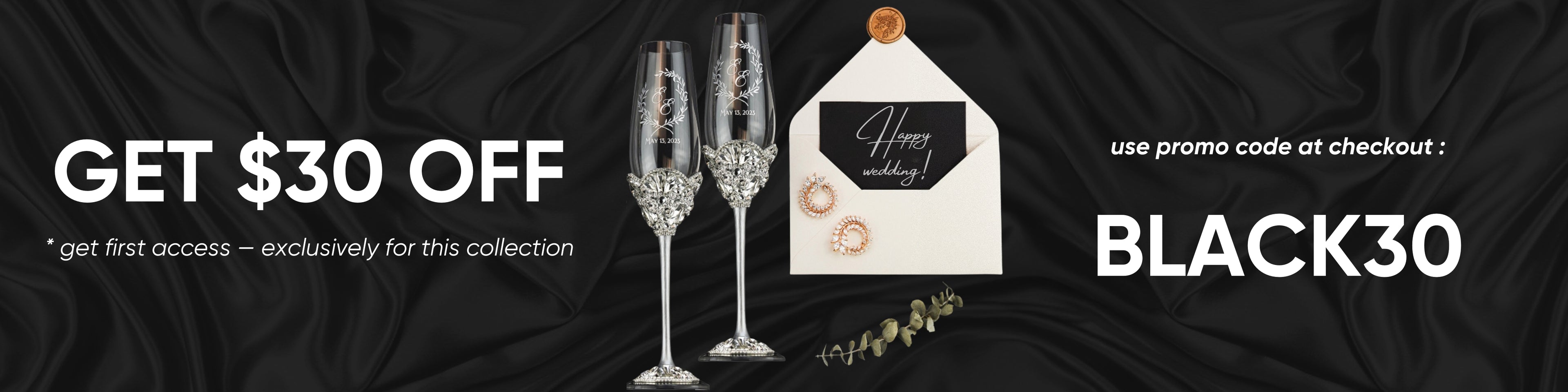 Personalized velvet gift boxes will not only make a WOW effect, but can also serve as beautiful storage for your set in the future. You can add your unique text on the cover: names, surnames, initials, wedding date, everything you want!