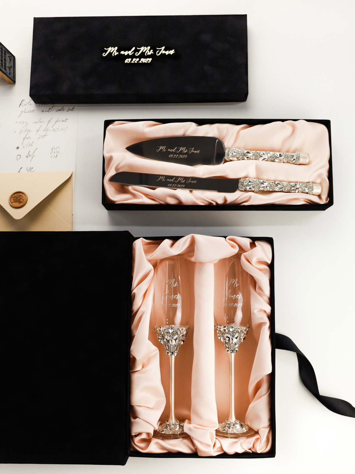 Handmade glasses with engravings, elevate the significance of your wedding day. These items reflect your individuality and stand out as cherished keepsakes.