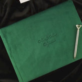 This book is completely handmade with the option to add personalization with your first and last names or wedding date. With the help of embossing technology, a drawing or an inscription is applied to the cover in such a way that the result is a relief image. The play of light and shadow favorably emphasizes the embossed personalization.