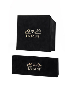 Personalized velvet gift boxes will not only make a WOW effect, but can also serve as beautiful storage for your set in the future. You can add your unique text on the cover: names, surnames, initials, wedding date, everything you want!