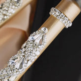 2. When washing sets, use a soft cloth or sponge so as not to scratch crystal rhinestones and personalized engraving. We don’t recommend rubbing the set very hard when washing.