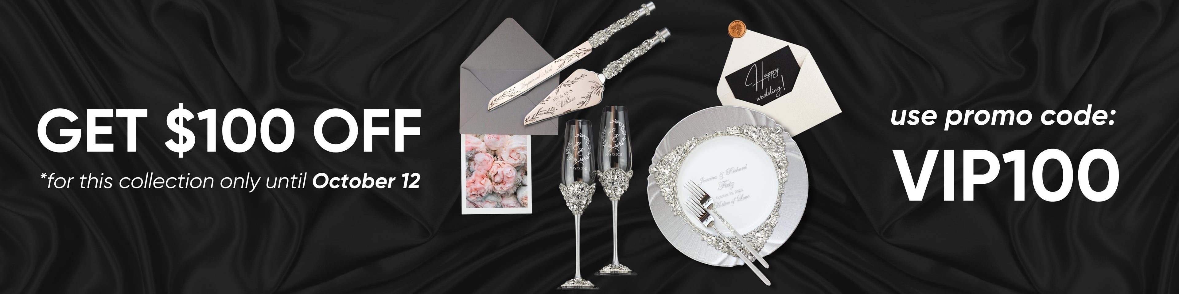 Personalized velvet gift boxes will not only make a WOW effect, but can also serve as beautiful storage for your set in the future. You can add your unique text on the cover: names, surnames, initials, wedding date, everything you want!