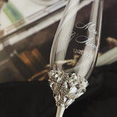 From wedding day to forever keepsake! Personalized wedding flutes encrusted with crystal rhinestones create a sparkle as bright as your future together.