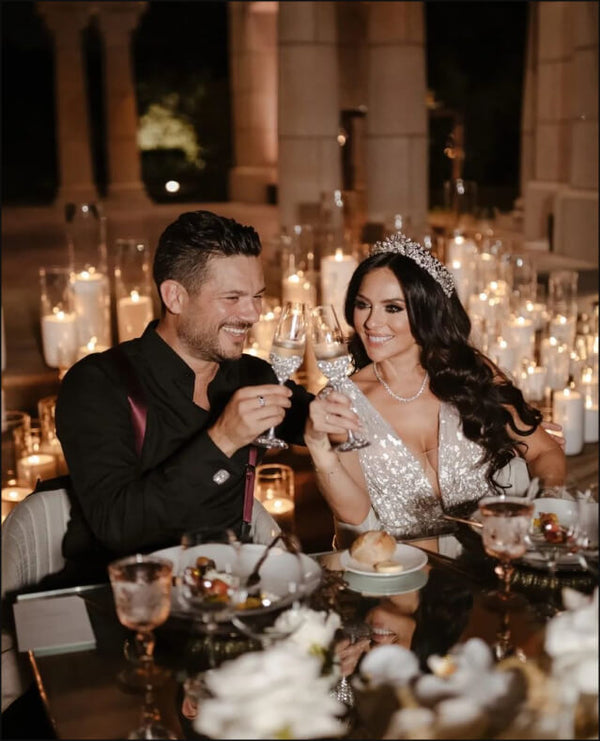2. When washing sets, use a soft cloth or sponge so as not to scratch crystal rhinestones and personalized engraving. We don’t recommend rubbing the set very hard when washing.