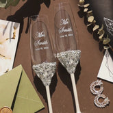 White Wedding Inspiration! Perfect gift for weddings — personalized flutes that reflect the essence of everlasting love and special moments together. With laser engraving, we'll add names, wedding date, or some special phrase, making it special!