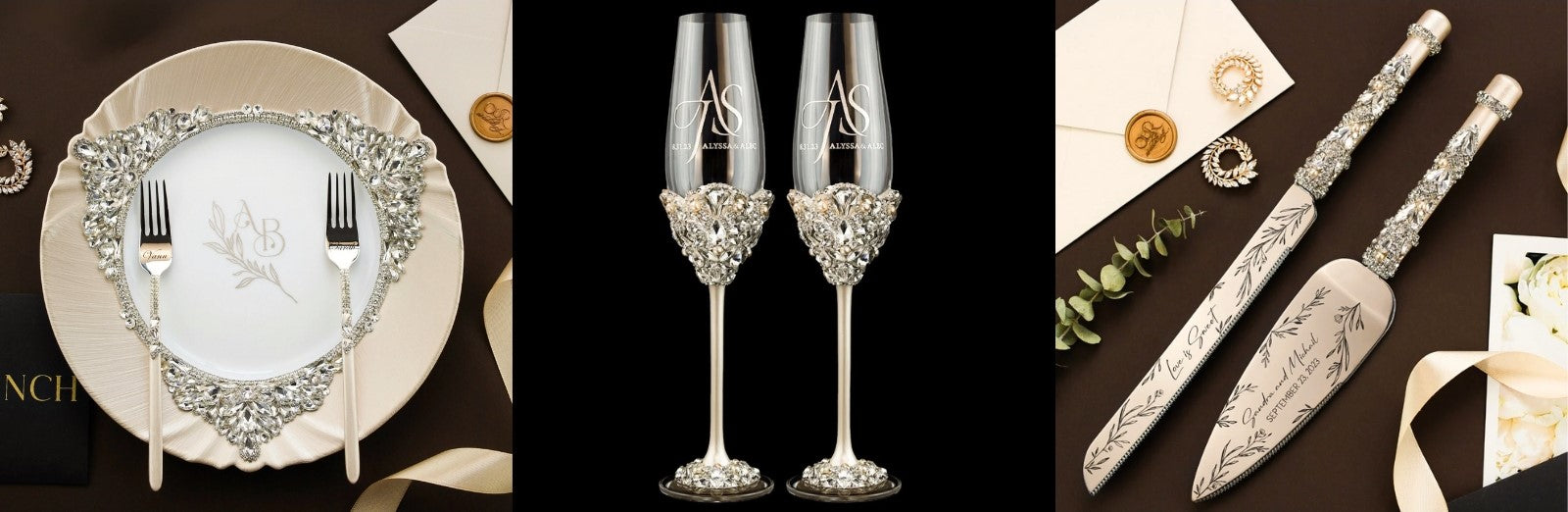 Personalized Crystal Flutes and Set for Cake Ruta in Silver- Regular price