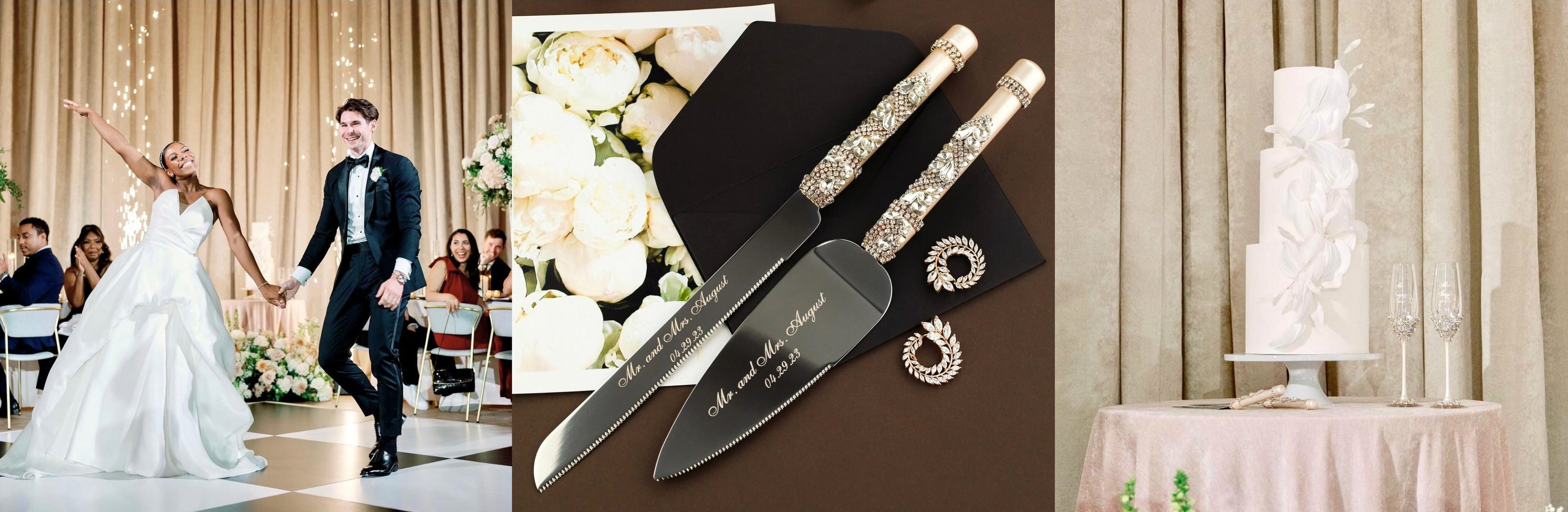 Personalized Wedding Futes and Cake Set Ruta in Gold
