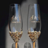 Celebrate love in gold! Perfect gift for weddings and anniversaries — personalized flutes that reflect the essence of everlasting love and special moments together. With laser engraving, we'll add names, wedding date, or some special phrase, making it special!