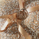 The pillow is completely handmade in rose gold color and decorated with ribbon and sequins to add sparkle to your celebration. The size 20x20.