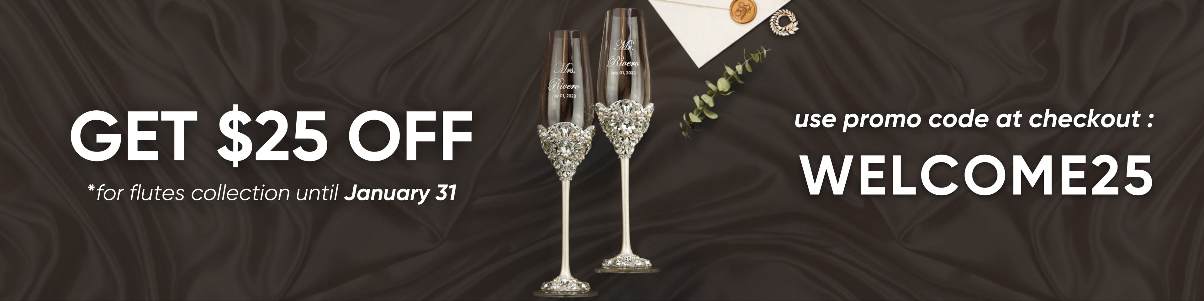 From wedding day to forever keepsake! Personalized wedding flutes encrusted with crystal rhinestones create a sparkle as bright as your future together.