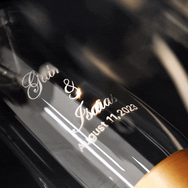 For personalization, we use high-tech equipment that makes glass micro destruction. After engraving, we apply a contrast that gives color to the text.