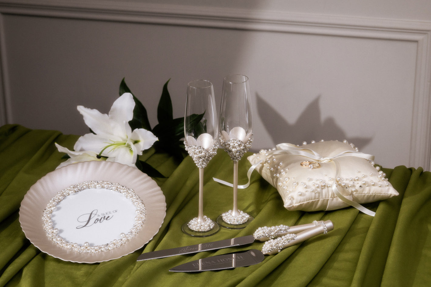 Glasses & Cake Set Blossom Ivory With Pearls- Regular price