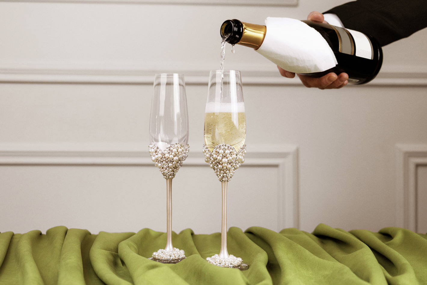 We make all our sets by hand with the special care, using non-toxic acrylic paint and the high quality crystal glass goblets.