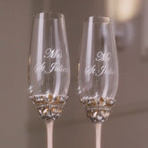 Elevate your special moments with personalized set Ivy Ivory & Gold! Crystal flutes and cake set united by laser engraving, adorned with premium rhinestones, and designed for those who appreciate the beauty of uniqueness.
