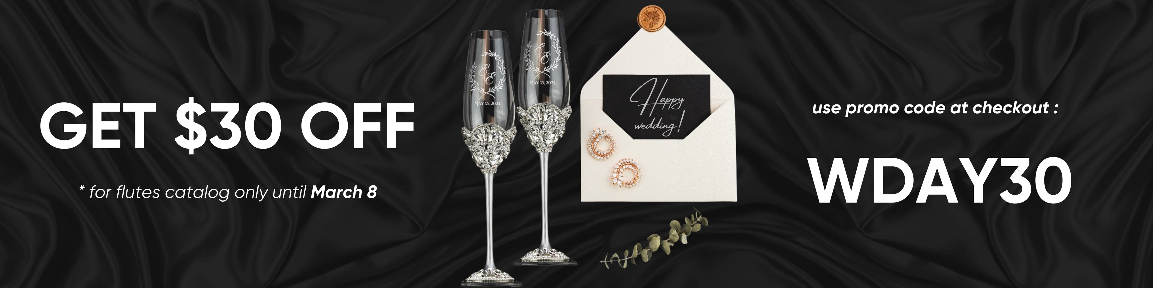 White Wedding Inspiration! Perfect gift for weddings — personalized flutes that reflect the essence of everlasting love and special moments together. With laser engraving, we'll add names, wedding date, or some special phrase, making it special!